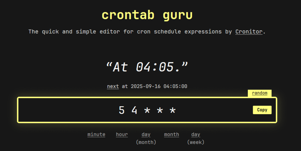 https://crontab.guru adresinden detaylı bakabilirsiniz