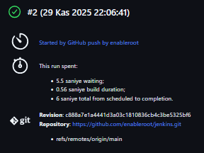 GitHub’da bir commit giriyoruz ve aşağıda göreceğiniz gibi bize çıktımızı vermiş oluyor.