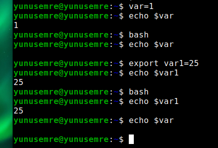 Linux’ta değişkenler her zaman aynı şekilde davranmazlar iki temel tür değişkenimiz vardır bunlar Shell ve Environment değişkenleridir.